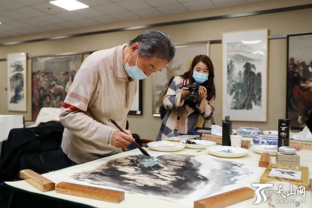 10月27日,在“文化润疆 · 新疆文联走进北新路桥集团绘画、书法作品展暨北新艺术中心启幕”活动中,来自自治区文联的书画名家们挥毫泼墨为活动添彩。