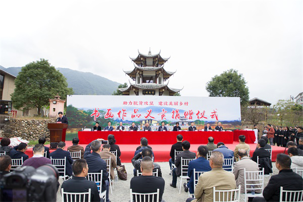 “助力脱贫攻坚 建设美丽乡村”书画作品义卖捐赠活动现场