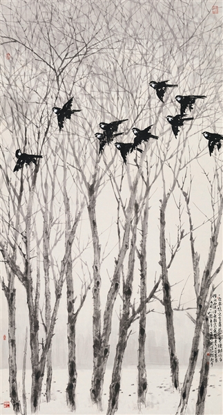 初冬的浙江美术馆,有了花鸟画的展出而显得颇为热闹和温暖。长发飘然的吴静初,不疾不徐地带着我们看了布满三大厅的作品,脸上一直带着微笑,“人生七十,我也迈入古稀之年啦!这次,我主要挑选了近两年来的作品120余件,以花鸟画为主,亦有书法、篆刻作品,集结成此展,作为几十年来对艺术孜孜以求的阶段性感悟和总结。”