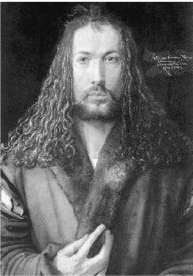 德国画家阿尔布雷特·丢勒(1471-1528)被认为是西方自画像第一人,比达·芬奇晚年的自画像早了几十年,比以自画像闻名的伦勃朗早了一百多年。一生中画下如此多幅自画像的画家,丢勒之前还未有过,这在当时的社会文化中也是奇特之事。