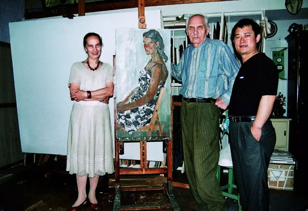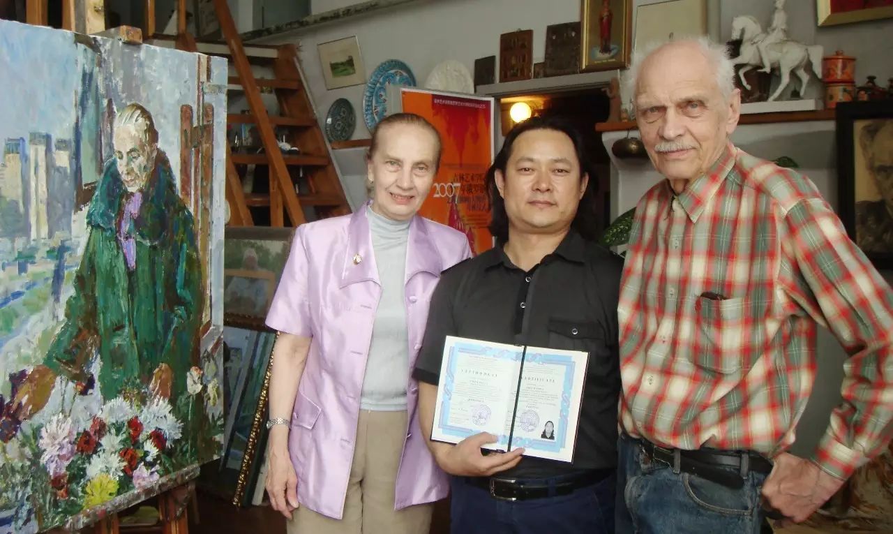 和恩师叶列梅耶夫院长、师兄安德列副院长在列宾美院合影