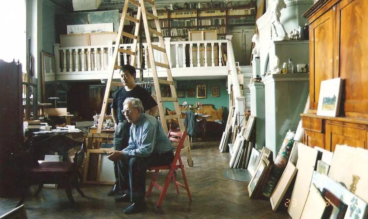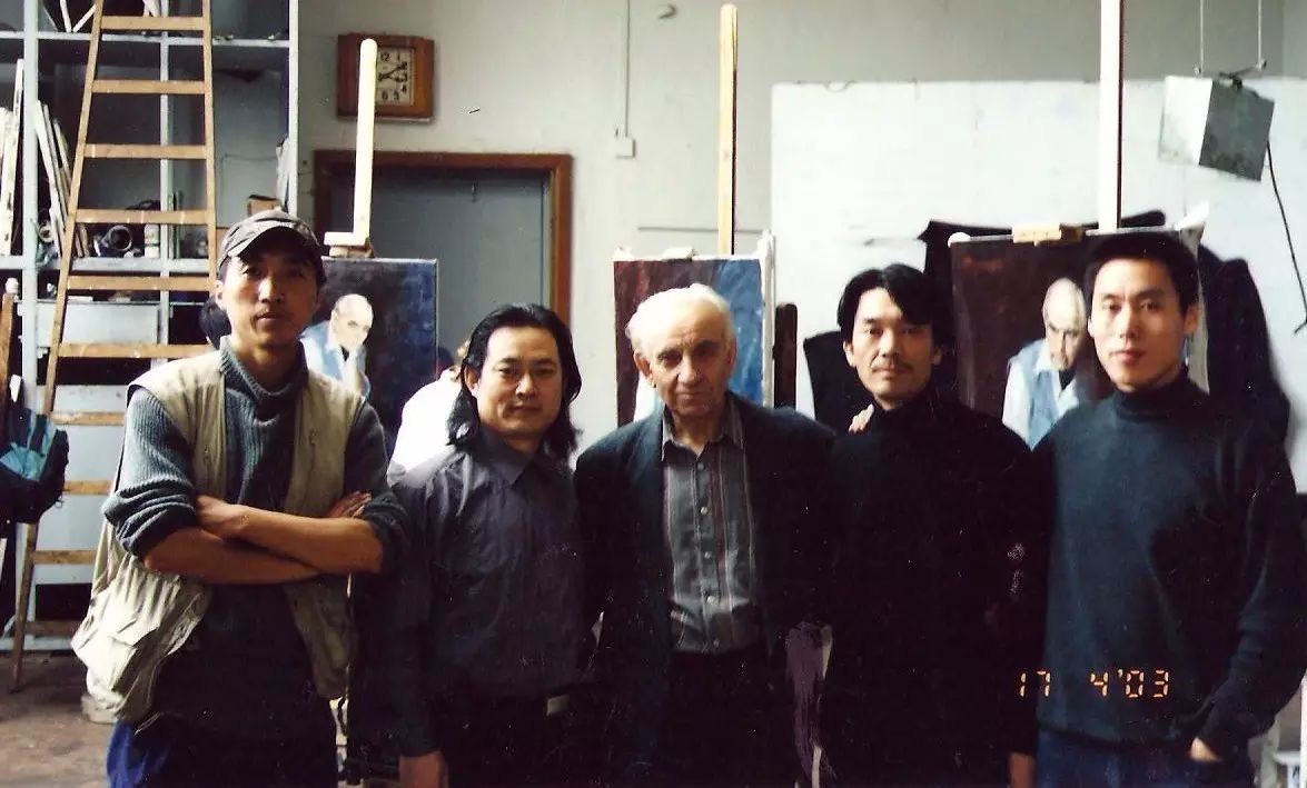 与导师尼古拉·列宾及同学在工作室合影