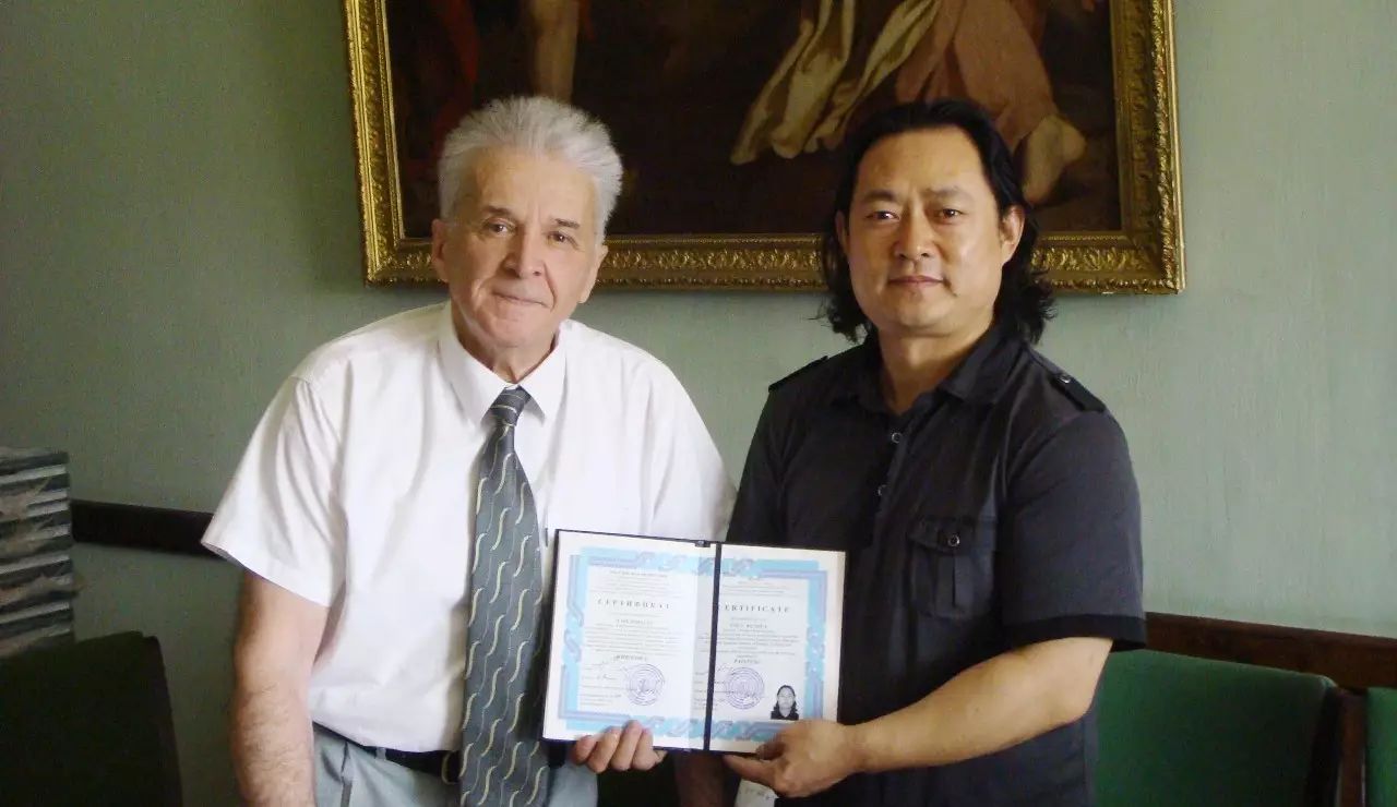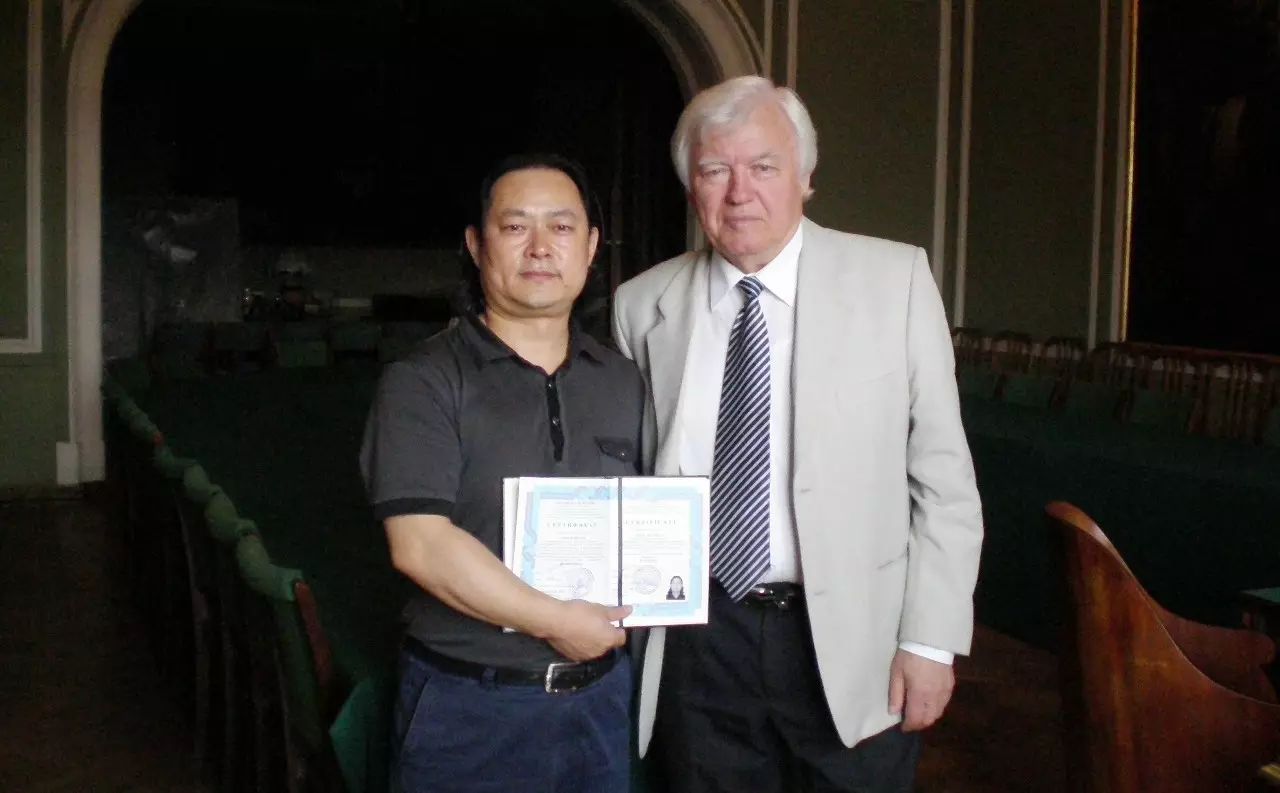 列宾美院院长恰尔金先生授予陈文华列宾美院博士学位证书