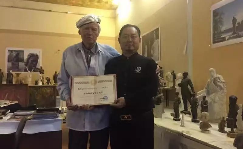 列宾美术学院院长查尔金先生担任中俄油画协会俄方主席并与中俄油画协会执行主席陈文华留影