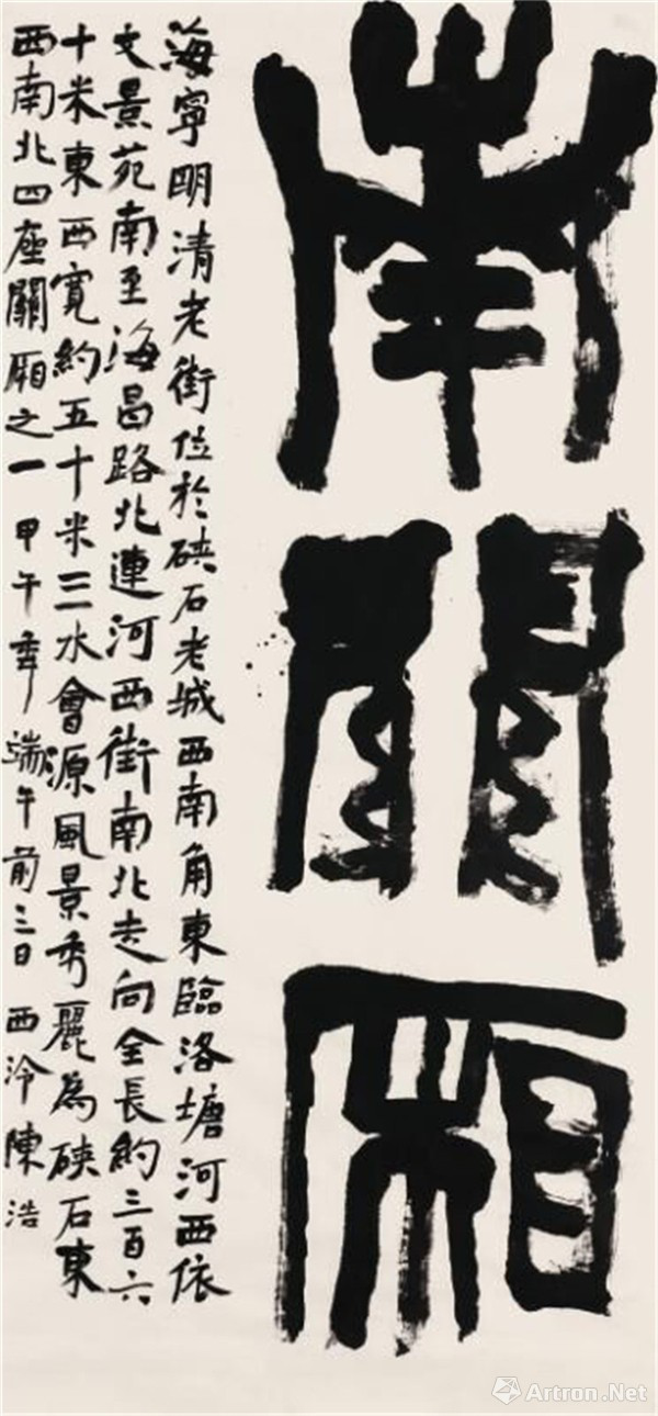 陈浩所追求的终极目标是要达到“中和之境”,单靠这股子狂劲儿终究是不行的,还必须与其他艺术要素相辅相成。陈浩幼承家学,尊重传统,遍临各家法帖碑版,从浩如烟海的书法宝库中汲取了丰厚的营养,这足以使他拥有了狂的资本,正所谓“不狂也狂有得狂”;他无论作书还是治印,都把艺术美感视为第一要务,厌恶鄙俗厌恶粗野厌恶丑陋,这使他具备有了审美的定力,足以划清“狂肆”与“狂荡”的界限;他还特别讲究艺术的精致化和书卷气,这使他的书法艺术得以“雄秀交融”,“狂而不野”,形成其独特的“狂逸相济”的鲜明书风。