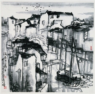 在中国美术学院教授、当代中国山水画代表人物童中焘看来,陆秀竞的画大概可分两类:一类是传统出新,“看他的画,运笔沉稳圆实,运墨透彻,不用渲染,全由点画积成,结构并不处处画到,参差撞让,断联承接,黑白虚实,互相生发,大空小空,顺势而成,气象滃郁,是传统意味。”另一类是黄宾虹“九墨”的综合,或可称为泼墨山水。“其间用笔,设色、泼、破、渍、积,以及水的倾泼,浑然一体,几乎难分先后。它又见蕴藉,不同于张大千用笔与泼墨泼色的二分脱节,更不要说现时一般泼墨作品的浅薄。”他说,“我特别欣赏秀竞的近几年之作,如2011年的《秋韵》《山水幽淡》,2015年的《梯田》《故乡》,2016年的《外婆家》等,所以欣赏,在于他有‘识’,是前二类的再综合,更加精彩。画幅不大但经得起读。或称我所见不多,他的这些综合,全是中国的笔墨功夫,目前还不多见。艺术贵在异中求同,只有强化中国特色,才能‘拉开距离’。”