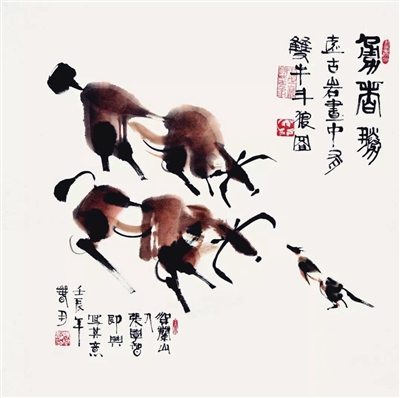 张学智当过中学美术教师、美术编辑、刊物主编,后在宁夏文史馆工作。30多年前,他爱上了岩画,从此一发不可收。他曾历时4年多,翻山越岭,风餐露宿,拓制了1000多幅贺兰山岩画拓片。后来,他将这些拓片无偿捐赠给了宁夏博物馆。经过多年不懈探索,他将神秘的远古石刻艺术转化为生动的现代水墨艺术,远赴法国展览,被誉为“中国印象岩画的开创者”。