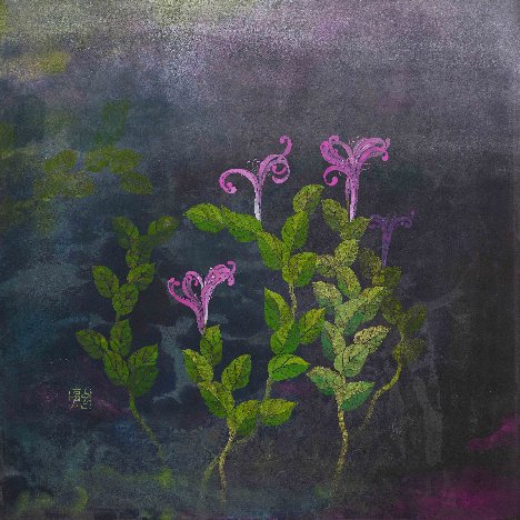 丁融的纸本花卉虽是静态图,却有着丰富的内心世界,赋予了诗意。这一花一草灵动的诗意,和他充分理解和运用中国古代婉约词和花间词的内涵不无关系。婉约词含蓄蕴藉、花间词迷离幽深,所谓“诗情画意”,有了诗情,便有了画意。由感而发,由情而起。“梦行云”、“醉花阴”、“满庭芳”等等,这些诗词中所蕴含的人世情境、人生哲理,足能以情动人,道尽人间万象。丁融正是吸收了从两者生发而出的浩如烟海的精神随想,使其笔下的花卉,仿若神韵游动,能感人间之情,会择高远之境,方显清丽之态。所以观丁融的花卉,好似都静静盛放于水流潺湲,波纹旋转的辋川。烟雨平生,怡然自得;孤芳一隅、独善其身。