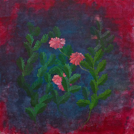 丁融在创作时,也受到了宋人折枝花卉的极大启发。“写梅未必合时宜,莫怪花前落墨迟,触目横斜千万朵,赏心只有两三枝。”不写全株,只画数枝的意味,错落疏简、弥觉隽雅。使人窥两三,便欲知全貌,空间外的留白,不作空白,而是饰以幽深的景深层次,激发着观者莫大的想象。作品《春芳》、《晚香》、《疏澹》等,无不让人观之惬意,思之浩然。