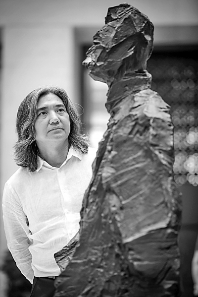 见到吴为山时,已近晌午。他中等身材,古铜肤色,波浪式卷发稍稍齐肩,谈笑间有种浑厚与纯粹洋溢于眉宇之间。