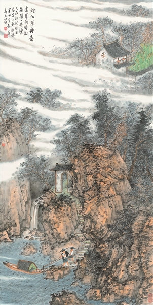 烟江归舟 纸本设色 136cm×68cm 2015年