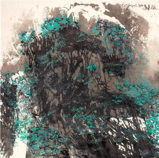 在手法上,巧妙表现雄浑之美。在中国山水画的变革上,唐人吴道子可谓开山鼻祖。吴道子写山水,不是写山水地势,而是以豪放之气,写胸中的山水,写客观山水和主观情怀溶化后重新铸成的山水。竹君在继承中探寻创新之路,力求逐步形成自己有个性的艺术语言。他的作品抛开了勾线填色的青绿山水的传统画法。山石有劈皴,但不僵硬。长于以线条定骨格,显灵动,活全局。作品《春山雨过》,以水冲墨,妙趣横生。作品《空潭》色墨互撞,辅之 以跳跃的线条和分层次的晕染,让读画者似乎在空寂的山谷里,望一泓碧潭,闻一阵清香,观一群鱼游,享一处仙境。竹君用色也是大胆的。作品《岁月留痕》使用了大量暗色彩,将画面重心下坠,使读者对“岁月”沉重的感觉油然而生。画面通过经营色彩的冷暖关系,将浑厚、刚强、坚韧的艺术效果凸显出来。辅树,是构成其作品的一个特点。不少山水画家也常常辅树,但与整个作品风格很难形成烘托。竹君的辅树是较为精彩的。作品《天山松劲》在褐色的山崖边,巧妙地生长出一棵棵参天古松,直气森森,铁衣生涩,激情四射,大有影摇千尺龙蛇动,声撼半天风雨寒的艺术感觉。这些,恐怕也是对丁竹君山水画雄浑之美的最好诠释!(周古平)