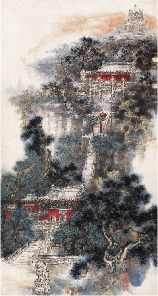 碧云寺(国画) 180×95厘米 1984年 何镜涵