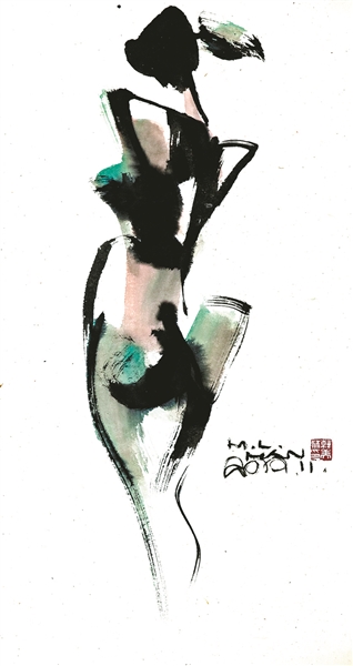 何红舟老师的推断,与韩老师的人体绘画实践是相合相契的。光阴流转,韩老师确实早已由“写生”进入到“默写”的阶段和境界。但是韩老师以往曾经无数次地备课、画写生,并且持续地关注时尚潮流和真实生活中的美好女性形象。他书架上的摄影作品集和女性时尚杂志等各类藏书,以及他不断以水墨、雕塑等不同方式呈现的人体形象,传递了他对于现实和理想的美的追踪从未停歇。总体来看,韩老师笔下的女人体呈现出鲜明的辨识度:她们健康的形体充满旺盛的生命力;美好的姿态与优雅让观者心神愉悦;她们娇羞矜持,她们含蓄,形意抵达即戛然而止。