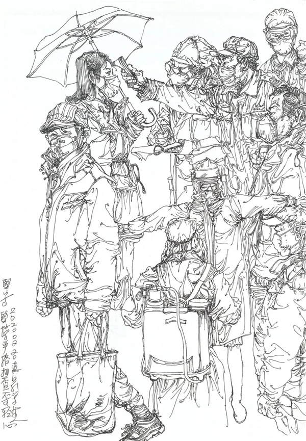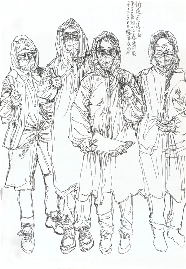 徐惠泉 《抗疫日记》系列——街道志愿者 34.5cmX24.3cm 2020年