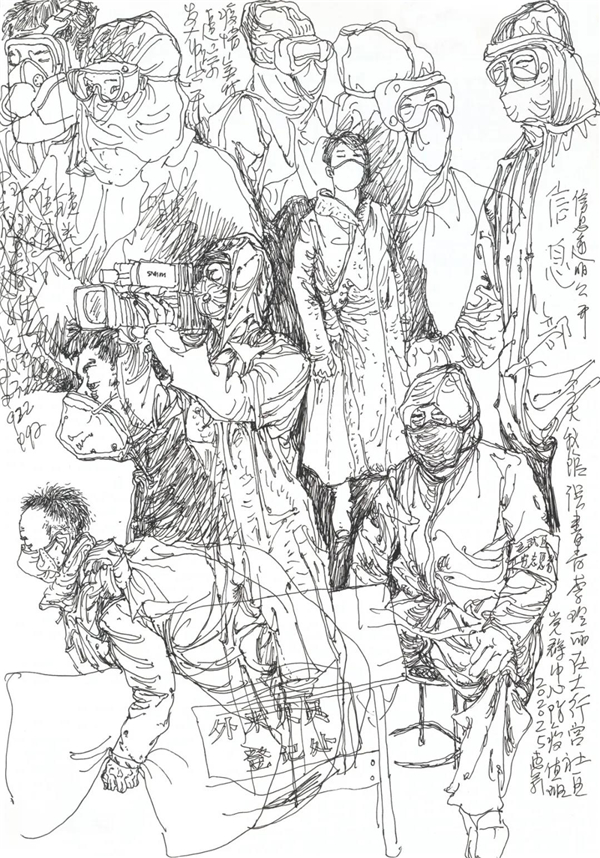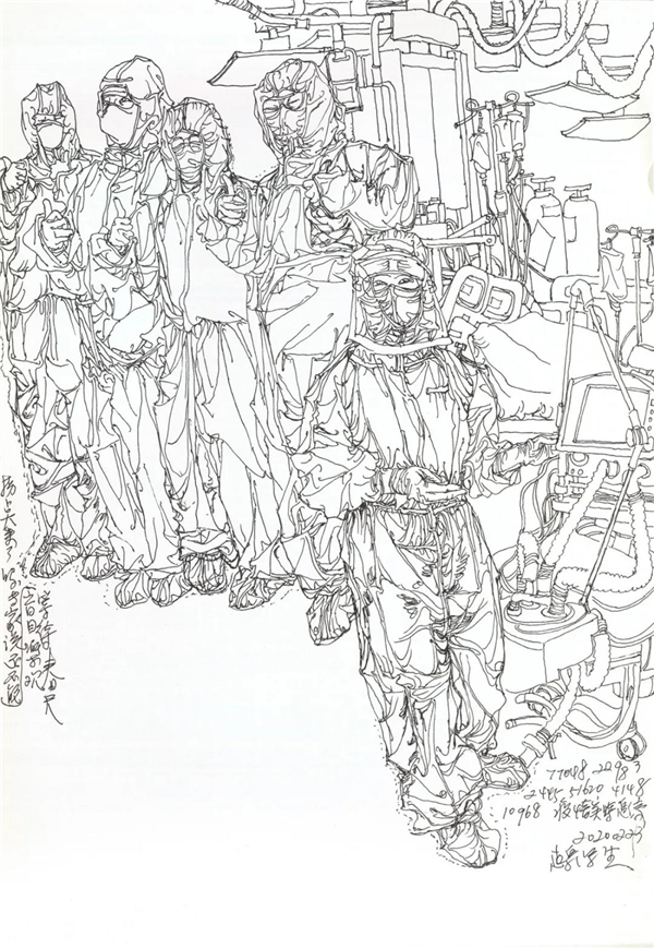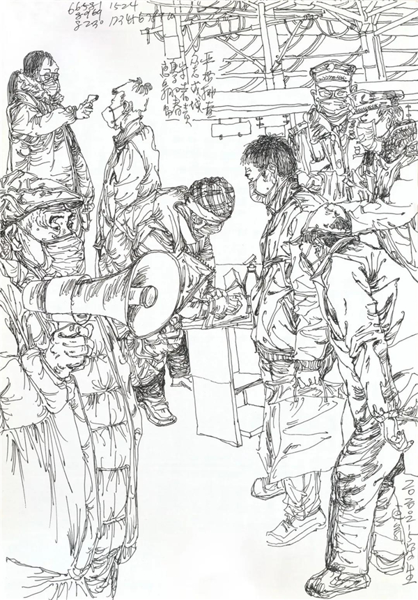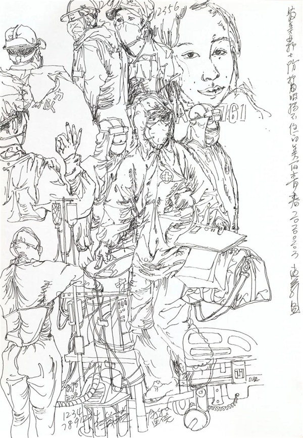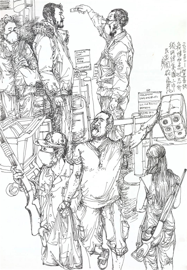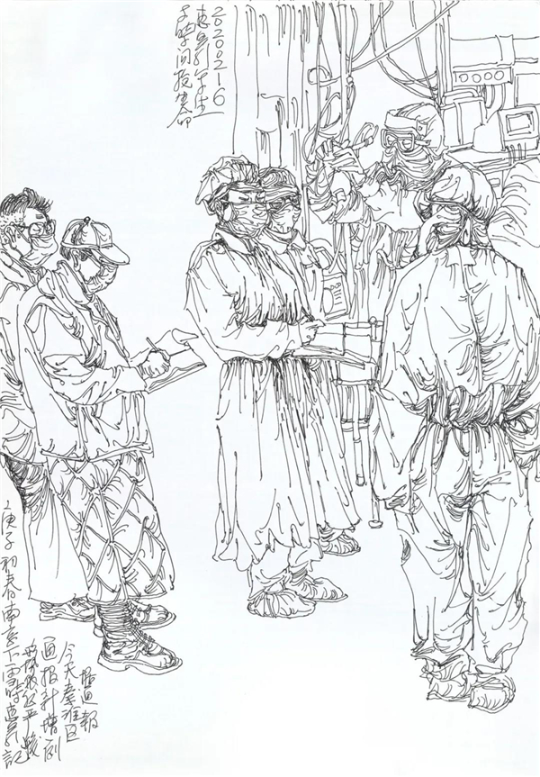我也关注到在网上出现的对大量画照片,画钟南山肖像的作品的质疑,由于现在传播方式的简单快捷,目前呈现给我们的创作情况确实是良莠不分、水平差错,尤其有大量业余作者的积极参与,其图像未能如专业画家那般精彩,但尽管如此,我看到的却是在疫情面前广大美术工作者、美术爱好者,在这样一个特殊时期的特殊的“心声”表达,水平如何不重要,我分明看到的是由丹青凝结的抗疫力量。当然,对于专业美术创作者的主题性创作,我们还要更多的沉淀与积累,还要更多的思考,需要作者置身于宏大的时代思想气象中,以更高的站位、更宽阔的视野,来审视和分析疫情、时代和人性。就我本人而言,我的这几则日记显然不是经过充分营构的图式,也不是多么了不起的“大制作”,我也不是为了发表而创作,我曾经这样说:“纪录是为了铭记,为了不忘却”。