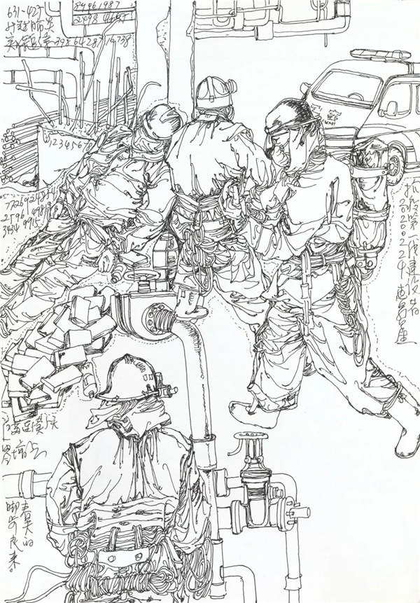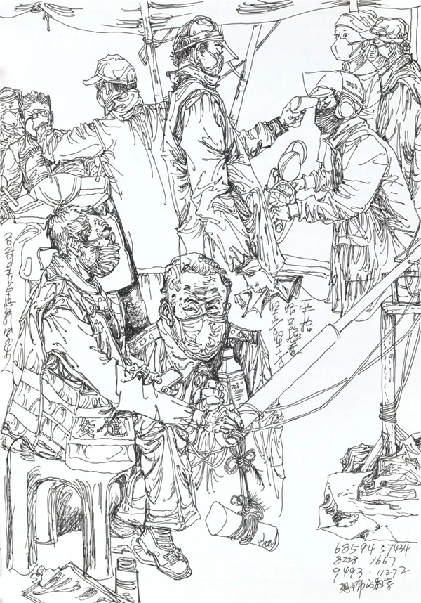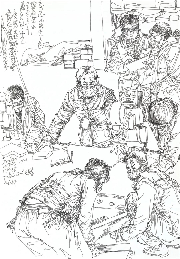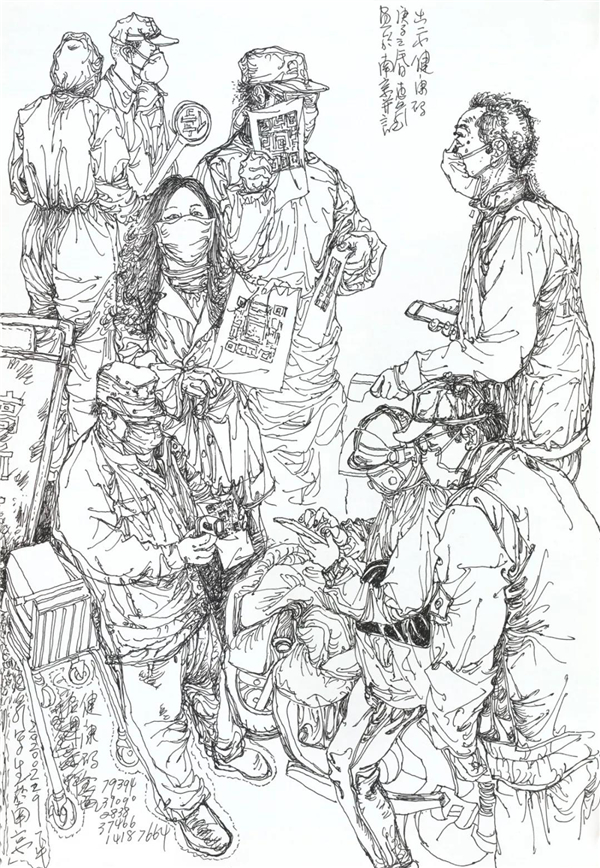 徐惠泉《抗疫日记》系列——在抗疫第一线的建设者 34.5cmX24.3cm 2020年