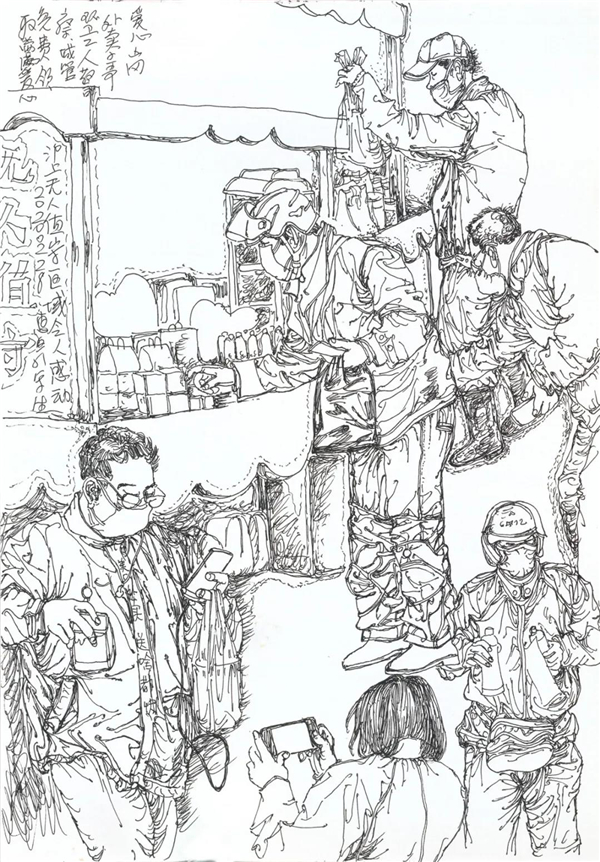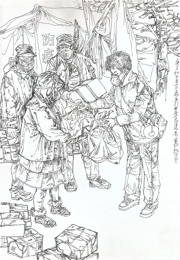 徐惠泉 《抗疫日记》系列——志愿者发放物资 34.5cmX24.3cm 2020年