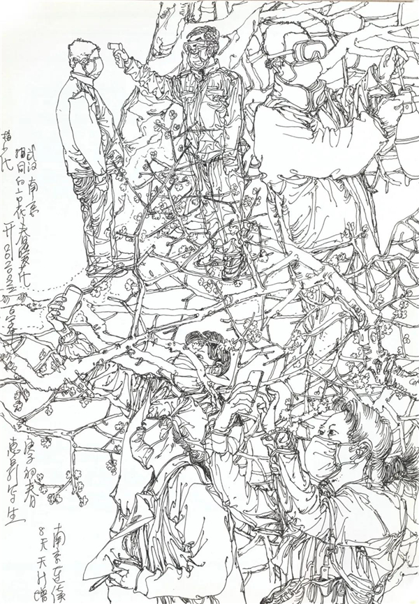 徐惠泉 《抗疫日记》系列——赏梅(武汉、南京 同一种市花,同一场战役) 34.5cmX24.3cm 2020年