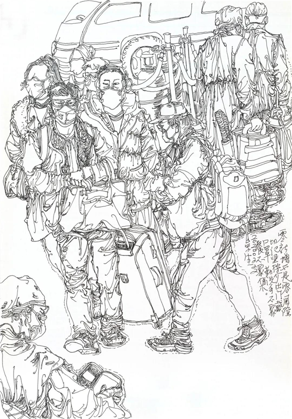 徐惠泉 《抗疫日记》系列——驰援武汉 34.5cmX24.3cm 2020年