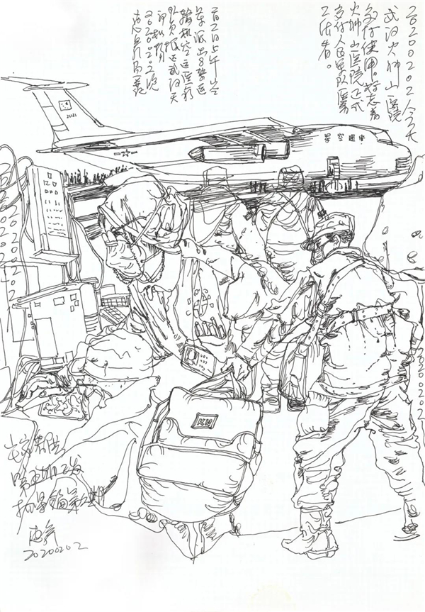 徐惠泉 《抗疫日记》系列——驰援火神山 34.5cmX24.3cm 2020年