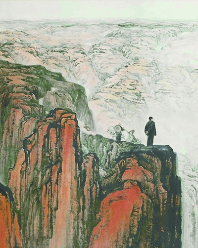 1959年年初,石鲁接受中国革命博物馆的命题,赴北京创作《转战陕北》。作品运用了传统中国山水画中高远与深远的构图,近景山体上竖直的墨线,镇住了浓重了赭石色调,一层层山岭向后推去,构成了画面深邃的纵深感。而立于高岗之上的革命领袖却没有以当时流行的高大全方式塑造,远望下的背影,看不清容貌,坚毅沉着的心态却跃然纸上。人物所占空间虽小却有统领山河之气魄,犹闻蓄势待发的金戈铁马之声。如此表现革命历史重大题材,即便从今天的角度看,也令人耳目一新。国博首次将《转战陕北》和17件这一时期的创作组画一起展示,以让观众了解经典艺术作品的诞生和背后的故事。