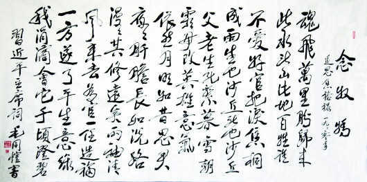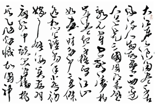 走进李鹤林家,客厅里正摆着刚刚临摹过的两幅“自叙帖”长卷,观之行云流水,气势如虹,如迅雷闪电,又如骤雨旋风。“书法,我喜欢狂草,那飞动的线条如音乐在空中飘荡,令人心旷神怡;那连绵的线条如高山流水一泻千里,令人荡气回肠。”