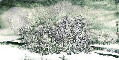 生于艺术世家的白海,早年于传统绘画用功颇深,在研习历代雪景绘画作品时,白海发现表现东北地区自然景观雾凇的作品却是空白,而他对此却情有独钟,多次尝试,传统技法均无法达到表现这一题材的理想效果。