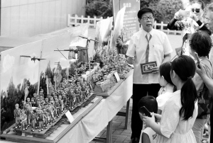 石家庄市新华路附近的河北省会儿童少年活动中心里面,一处摆放在石家庄市新华区退役军人管理服务中心门前小广场上的主题泥塑作品吸引了不少市民先后前往观看。这组颇耗心血的作品,是由素有石家庄“泥人张”之称的民间艺人张智创作完成。