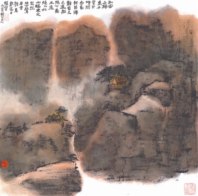 这只是一方面。更重要的方面则是他以师法传统为起点,对大自然倾注了真挚的爱,于是他在大自然中得到了培育。他深厚的木刻功力又为他钻研国画铺了底,因而他能得心应手地以其老辣古朴的笔致,状写清新雅健的画意,散发出十分浓厚的泥土芳香。他的近作《黄山画》数十帧,从黄山全貌到每一细部,一一写来,十分传神。黄山那烟雨迷蒙、云气氤氲的奇景,都在他淋漓酣畅的笔墨之下展露无遗。其沉厚处稳健工致,洒脱处奔放痛快,可谓得黄山三昧。我在欣赏之余,不禁赞曰:“谁谓今人不如古,穆倩自是后生家。”如果说石涛、梅清都是“黄山画派”的领袖,那么赖少其先生作为“新黄山画派”的执旗人,当之无愧。(唐云)