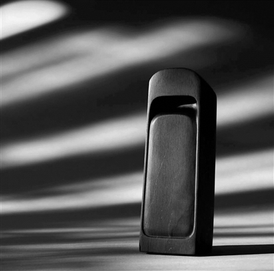 宋砚的简洁还在于,它没有砚池。北宋中后期,砚台和砚池才开始逐渐分离。戴云江说:“它有一个演变的过程,和我们的审美习惯、生活习惯都有关系。宋代极简主义和理学思想非常兴盛。宋代以后,人们就很难欣赏‘少、枯、残缺’这种高度概括的抽象美,越来越趋向世俗化。宋砚样式看似简单,其实里面的变化比明清砚台更复杂。它的长宽高有严格的比例,不是随性的,太方了、太瘦了都不好看。现在很多人忽略了这一点,舍不得把多余部分削掉,整个创作思维被材料牵着走。古人不是这样,拿到一个石料,首先是避开所有瑕疵,最大程度取料。但在雕刻的时候,线条必定是大开大合。”