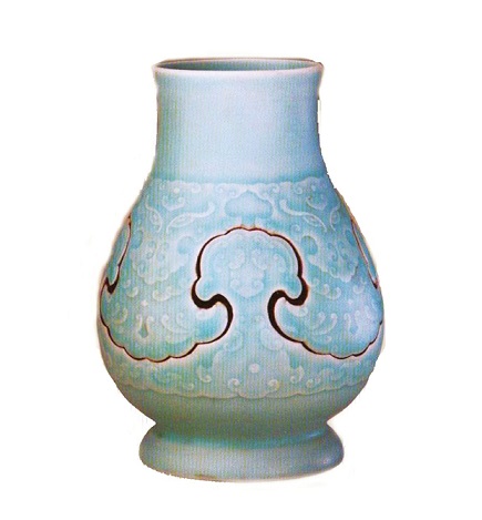 以乾隆景德镇窑粉青釉暗花夔纹交泰瓶为例,此瓶高16厘米,口径6.9厘米,足径8厘米,瓶口微撇,短颈,溜肩,鼓腹,圈足。通体及足内均施粉青釉。腹部中间镂雕成仰覆如意头形,上下两部分互相勾套,可活动,不可拆分。如意头形内有凸起的夔纹装饰。足内有青花“大清乾隆年制”六字三行篆书款,现藏北京故宫博物院。