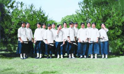 北洋政府时期,尤其是“五四”以后,革新的思想有了实质的体现。在教育部的推动下,初、中、高级教育机构的标准水平有了提高,入学人数也增多了,更大的进步是女性受教育的权利得到了重视。1920年北京大学首次招收女生,之后南京高师也招收女生,一些进步的中学开始男女同校,甚至同班。照片中的十四位女学生穿着统一的服装,手握文凭,意气风发,展现出一种与传统的中国女性截然不同的精神风貌。