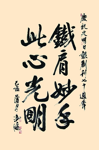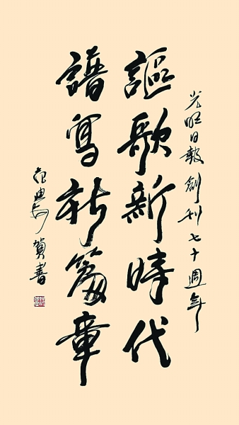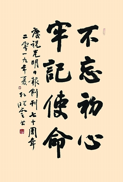 这些书画寄语饱含着对光明日报的真情,让我们在这些墨迹尤润的作品中,重温我们的光荣与梦想,铭记我们的使命与担当。