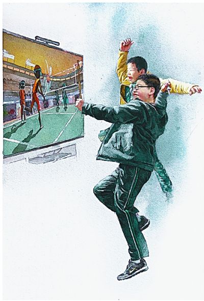 电子竞技经典的时代,有“超级马里奥”“冒险岛”“魂斗罗”,那时都是用有线手柄来操纵,玩到惊险处,手指都是酸痛的。现在就厉害了,有了“体感竞技”,手柄就被游戏者的身体取代了。对着一块大屏幕上蹿下跳,呼朋引伴一玩就是大半天。打一场篮球、网球或羽毛球的电子比赛,虽然人没在球场,但汗可没少流,痛快!(蒋新军)