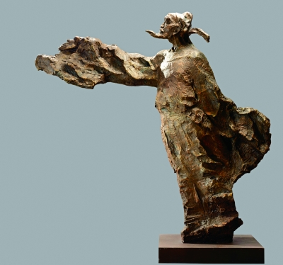 《夔门抒怀》表现的是老年时期登高望远的杜甫。吴为山在创作此像时呼应青年时期的杜甫,面对大好河山,老夫聊发少年狂,须飞袖舞,壮心不已,博爱丹心,吐为诗句。