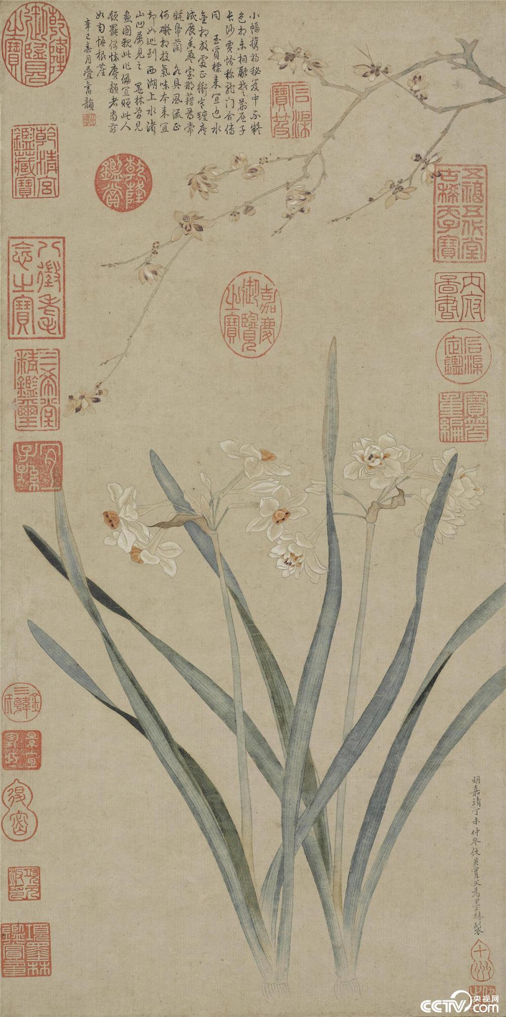 明·仇英《水仙腊梅图》