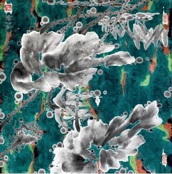在这些以山水园林、荷塘清韵为主题的水墨作品中,他还不同程度地流露着印象派绘画的西洋之风,使作品呈现出中西交融的清新面目。特别是在光和色彩的处理上,画家打破了传统水墨画的常规,大胆借鉴印象派绘画的经典之处,充分协调墨块、色彩之间的关系,并加进中国传统的点彩技法,借助疏密得当的构图、虚实相生的渲染,创造出既有东方气质又具西方情调的别致之作,实现了中西绘画的成功跨越,为当代中国水墨的革新注入了新鲜的元素。不仅如此,他还把中国绘画中最重要的“笔触有效运用” 元素发挥得淋漓尽致, 因应不同特点的景物、时空和气象,以千变万化的笔触加以演绎,把丰富色彩、光感变化和个人情感融合一起。