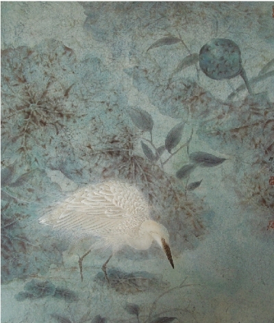董晓畔早年临摹宋元明清及近现代大家之作,深得传统笔墨精髓。近年来,其积淀益厚,画作一改先前临古法度森严之风,渐有取舍,参融造化,心源相汲,遂成自家风貌。如其《白夜》系列打破了传统中国花鸟画空灵旷达、计白当黑的布局方式,画面密塞繁复、拥迫重叠,城市、森林、铁网与飞鸟挣扎哀鸣的影像并置于画面,表达了画家对现实世界生态环境危机的忧患意识和对平衡生态、解决环境危机问题的强烈呼吁。此一系列作品明显不同于中国传统绘画的象与境的营构,是现代的表现手法,当代的思想主题。再如《幽谷》系列,将寓意化、拟人化的想象之鸟设置于重峦叠嶂、幽谷深壑、烟云缭绕的画境,渺然神秘,若方外之境,香花、碧树亦非现世得见,俨然是画者心神悟化之桃源,去尘脱俗、如梦似幻,美不胜收,思而难得,只可以神会、以梦游。