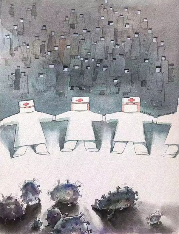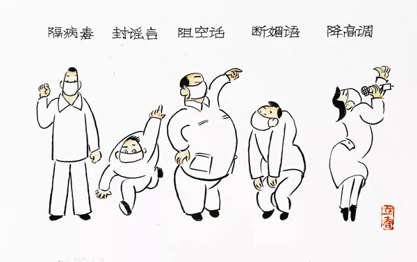 对于这场没有硝烟的“战争”,漫画发挥了“轻骑兵”的作用,它通过大众所喜闻乐见的形式,简明扼要,针贬时弊,讴歌真善美,抨击假丑恶,並进行防控疫情宣传,以幽默风趣来鼓舞斗志,这对于全民参与的疫情攻坚战,也是一种积极的精神力量。
