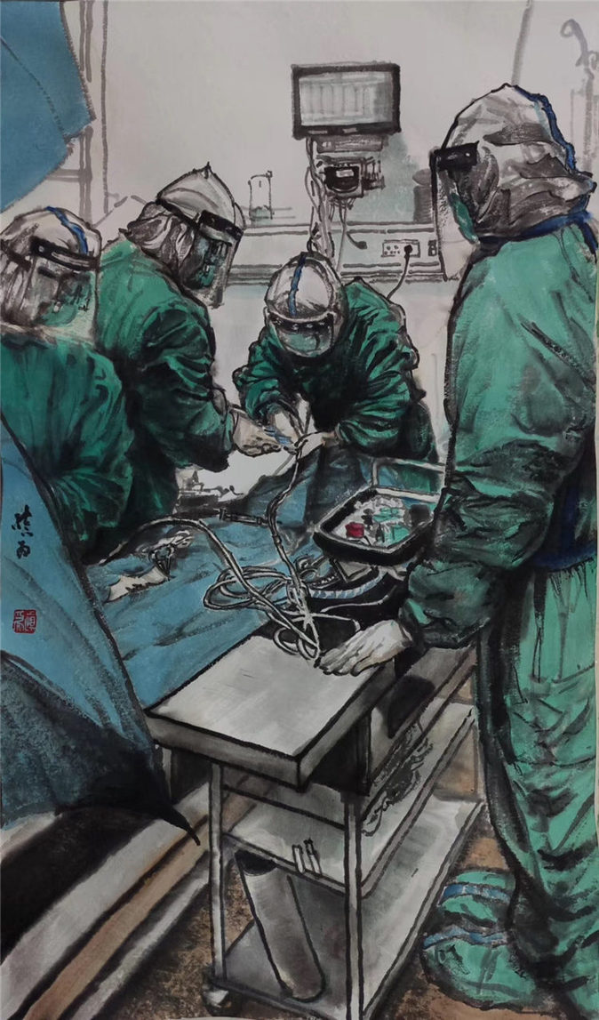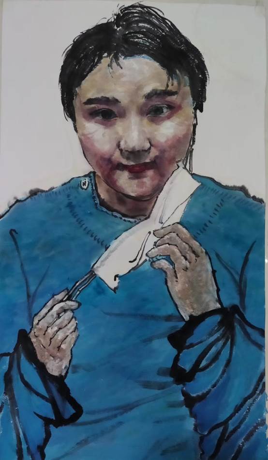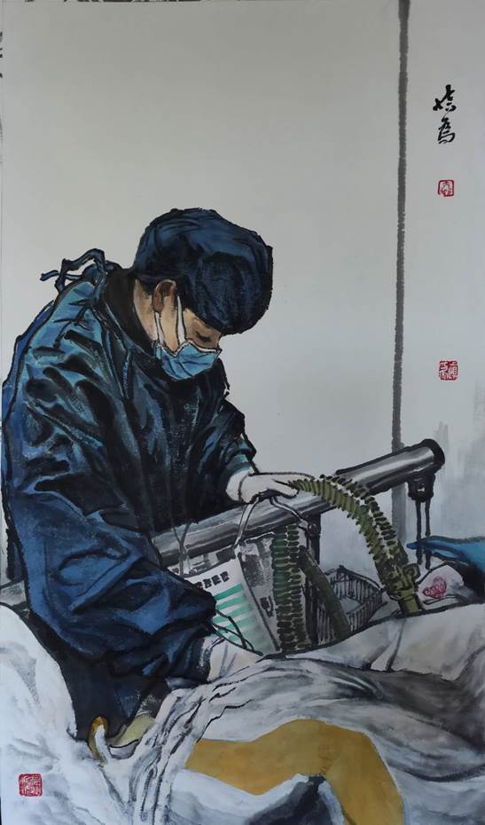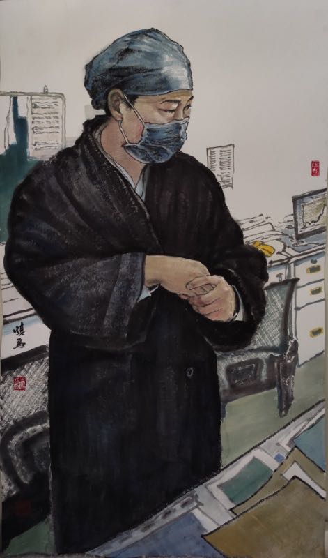 彩墨国画速写《战疫日记之阵地坚守——记北京市大兴区人民医院急危重症患者守护天使郭月红》