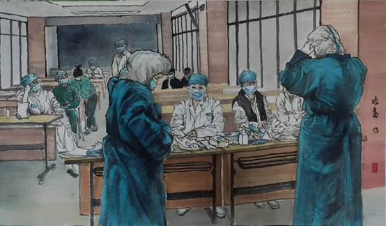 彩墨写意国画速写《战疫日记之生死之间——记走进一线直击抗疫禁区》
