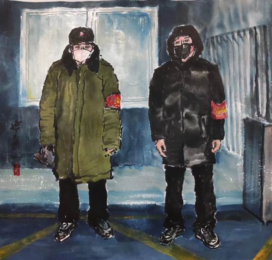 彩墨写意国画速写《战疫日记之哥俩辛苦了 》