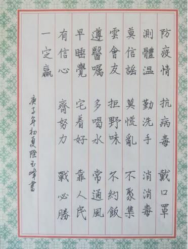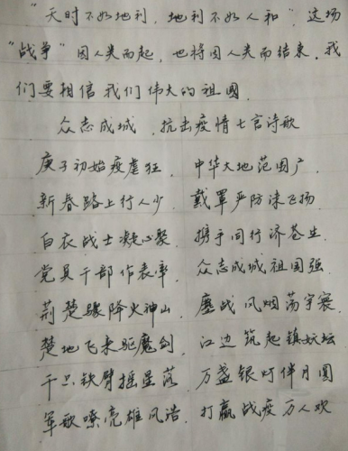 “众志成城 抗击疫情 劳动闪亮”硬笔书法作品选(一)