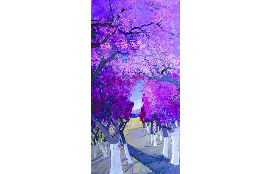 张天潇是个心很静、很简单、很纯粹的人。从他的画作中你能感觉得到,他内心对于艺术的那份由衷的敬畏。他的画作色彩鲜明,生动活泼,洗练隽永。他的山水画中,云树如带,远山如影,入微之处描绘得栩栩如生,让人身临其境一般。