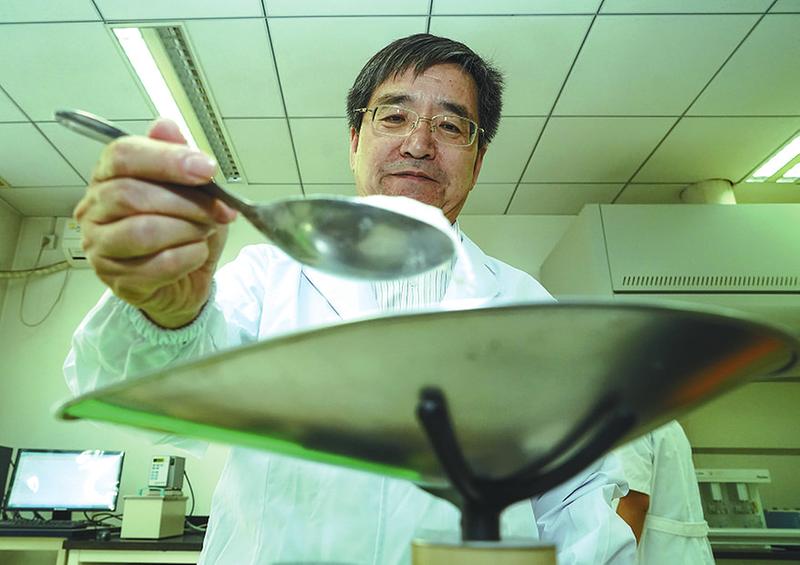 9月20日,何中虎在国家小麦改良中心实验室准备测试用面粉。新华社记者 殷刚摄
