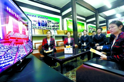 今天上午,颐和园养云轩一座古朴的古建院落中,传出了嘹亮的国歌声……导游服务中心职工之家内,12名韩笑工作站的成员正在收看党的十九大开幕,他们身着接待礼服,一边收看电视直播,一边随时准备参与接待服务。