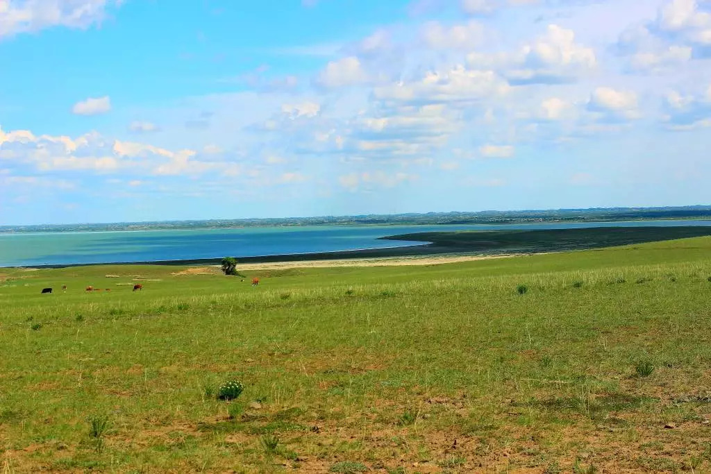 带着疑惑,大客车在广袤的草原上继续奔驰。一个多小时后,在穿过一个极小的草原小镇、历经八个小时的长途跋涉后,中午十二点,我们终于来到这次旅行的终点站——达里诺尔湖。
