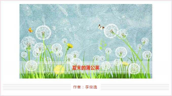 那年的夏天,拉勾的约定,坚持的任性,这细碎惆怅的流年,美得销魂蚀骨,不过一句少年谑笑、拈花转身的功夫,就已经苍然老去,老得那么快,那么凛然彻底,干脆透明。我的眼泪留下来,灌溉地面的小草,不知道来年会不会开满一地的记忆和惆怅,然后跟随蒲公英的种子被风吹起,在人间轻唱我的歌谣。