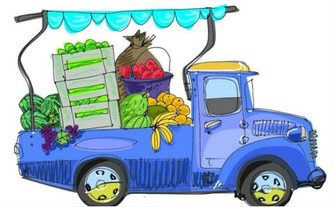 (第二天,天还没亮,农场主就和大舅哥把笼子里的鸡一筐筐往货车上搬。还有许多瓜果蔬菜。旺财和胖墩儿叼着一块大的破麻布放在车斗的最里面,挨着小花的笼子,藏在里面。)